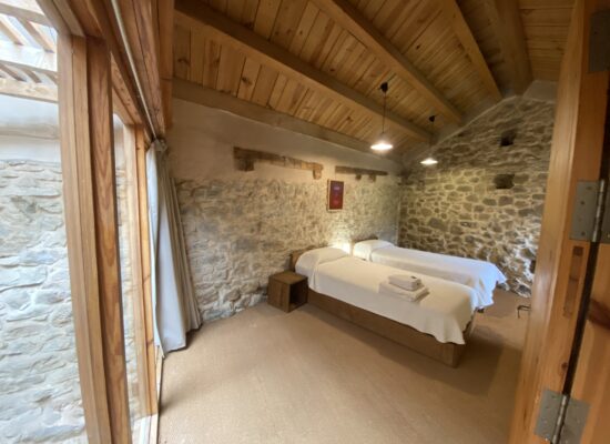 Para grupos pequeños que valoran los buenos ratos. Una casa de dos plantas y con alma de refugio. Su corazón es la zona de tertulia, con escaños de madera de negrillo alrededor de la chimenea, bajo una gran lucera que llena el espacio de luz natural. Ideal para compartir, charlar y reconectar.